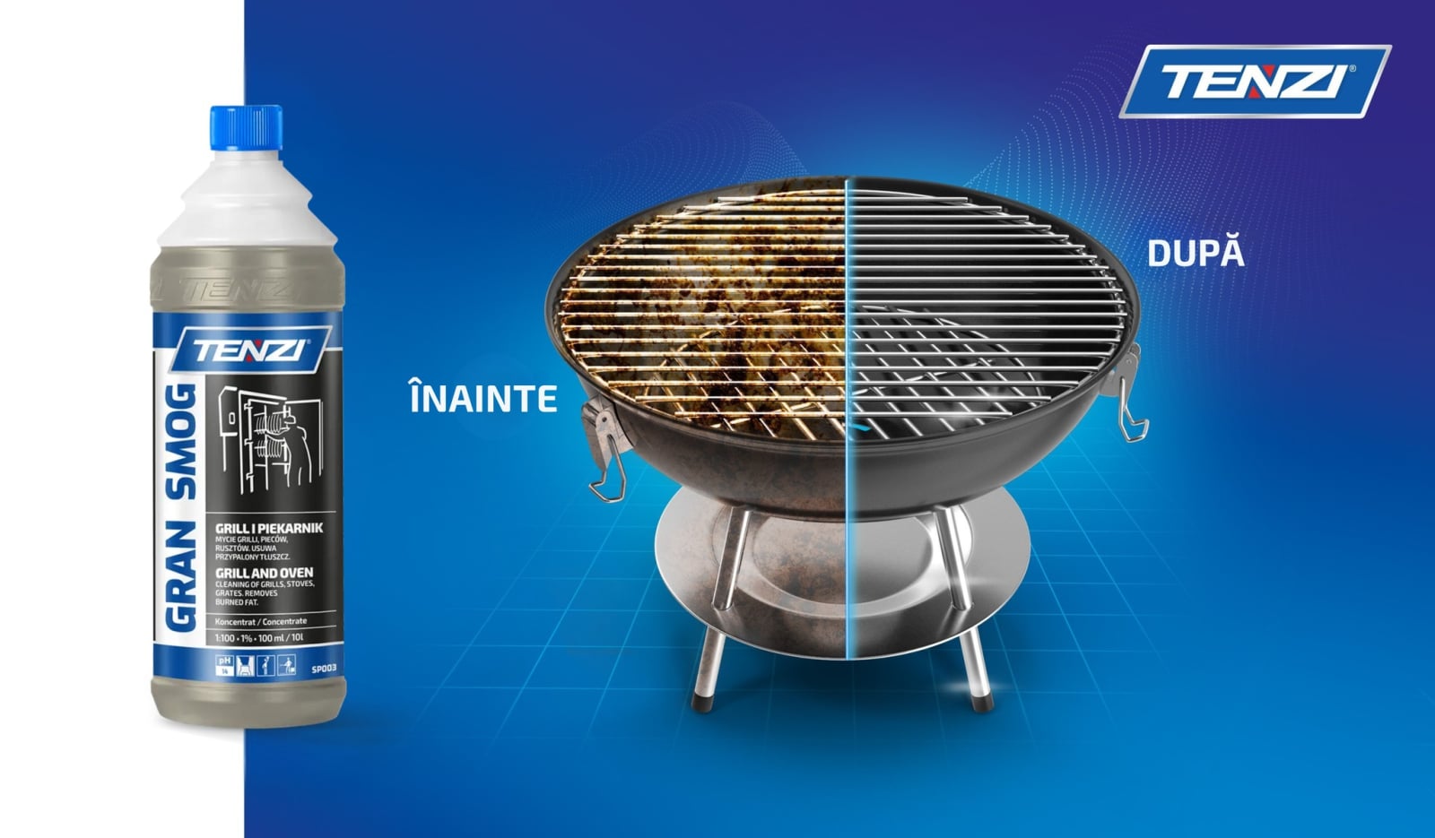Gran Smog este un produs concentrat destinat curatarii echipamentelor si suprafetelor expuse la depuneri dure: grasime arsa, murdarie impregnata, urme de afumare, funingine si gudron. Acest detergent este recomandat in special pentru bucatarii profesionale (pizzerii, restaurante, HORECA), dar poate fi folosit si acasa atunci cand ai nevoie de o solutie puternica pentru cuptor, gratar sau semineu.